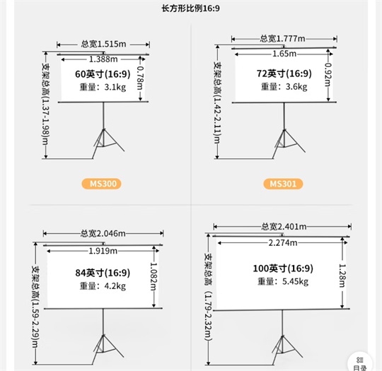 幕布尺寸  :   100英寸